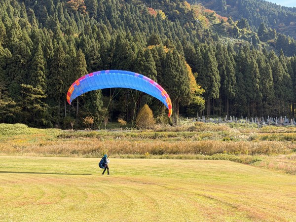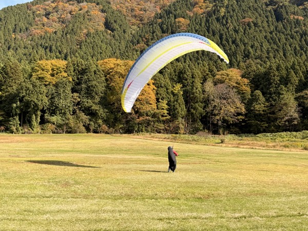 先日初フライトしたエミコさんもグラハンで風&グライダーと格闘してました。